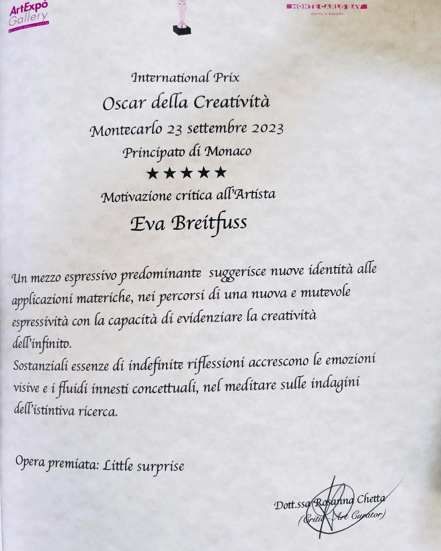 Saturday, September 23, 2023, Salon Sincerity - Monte Carlo Bay